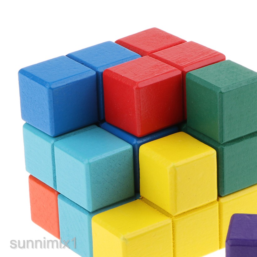 Sunnimix1 7 Colors Wooden 3d Soma Cube Puzzle Box Brain Teasers Building Blocks Shopee Philippines