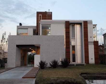 La Casa Amd De Fachada Moderna Con Formas Planas De Hormigon Visto Y Madera Diseno Vip