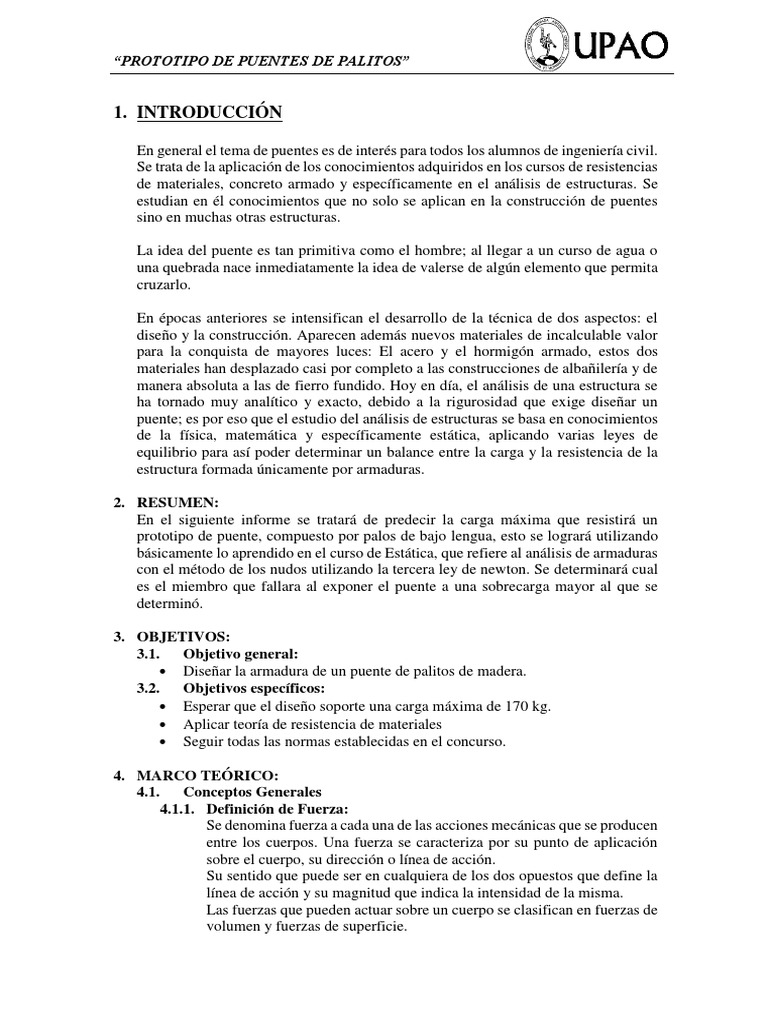 Informe Puente Palitos 1 Estres Mecanica Puente