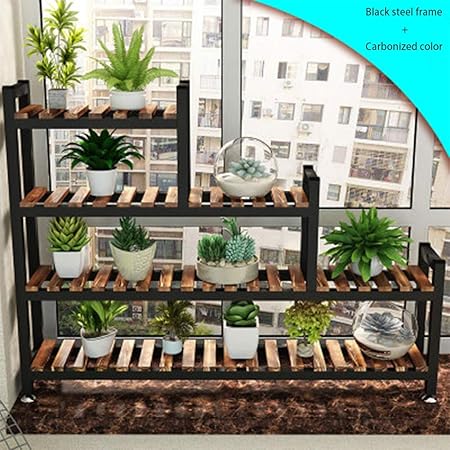 Yhegv Rejilla Para Macetas Hierro Retro Estantes De Flores Madera Maciza Aterrizaje Multiples Capas Balcon Multifuncional Sala De Estar Estante De Macetas Estante De Flores Estante De Macetas De Amazon Es Hogar