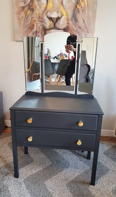 Vintage Antique Dressing Table Drawers Hand Painted Dark Grey Gold Handles Ebay