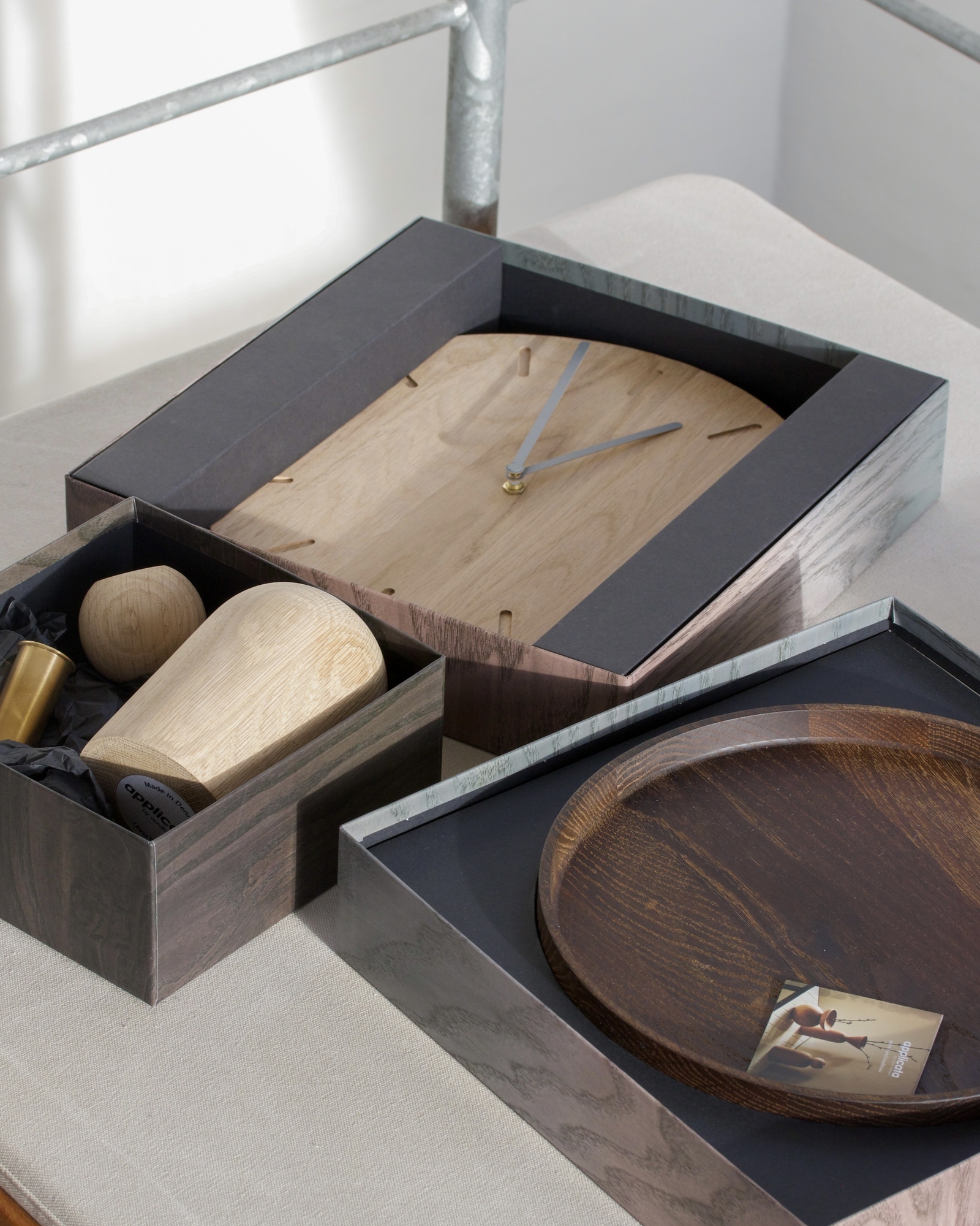 Holz Wanduhr Duhrchbruch Eiche Eckig Natur Dezain De