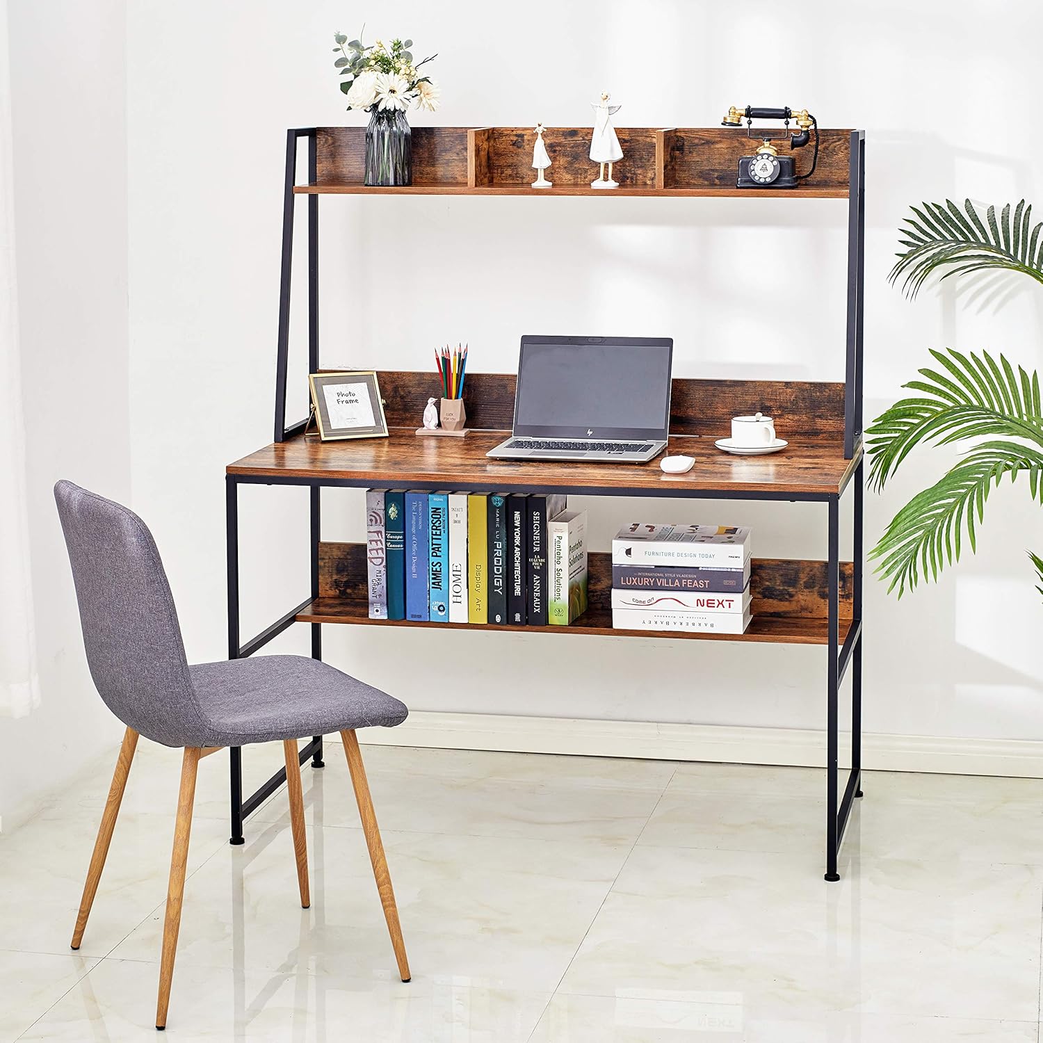 Amazon Com Kealive 47 2 Inch Computer Desk With Hutch And Shelf Writing Study Table With Bookshelf Modern Home Office Desk For Small Space Pc Laptop Table Workstation Steel Frame Wood Desk Vintage