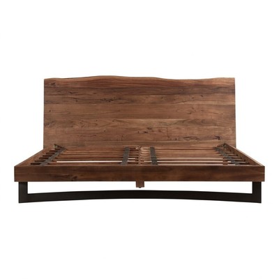 89 King Bed Modern One Of A Kind Live Edge Solid Acacia Wood Frame Iron Legs Ebay