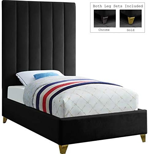 Amazon Com Meridian Furniture Via Collection Modern Contemporary Velvet Upholstered Bed With Deep Channel Tufting And Complete Sets Of Gold And Chrome Legs Included Twin Black Furniture Decor