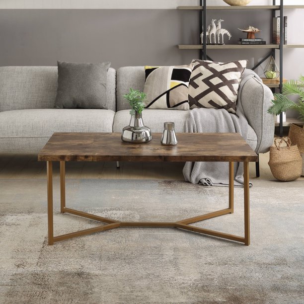 Boyel Living Mid Century Beige Modern Wooden Coffee Table Stylish Y Leg Golden Base Bh Wf192555aaa The Home Depot