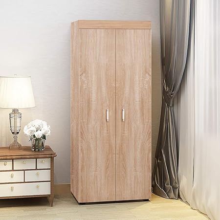 2 Doors Wooden Wardrobes With Hanging Rail Modern Clothes Storage Closet For Bedroom Furniture H170cm X D48cm X W70cm Oak Effect Amazon Co Uk Kitchen Home