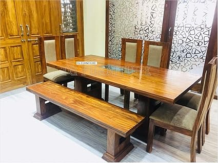 Tg Furniture Rosewood Dining Table Set 6 Seater With Bench Big Size Amazon In Home Kitchen