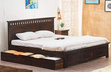 Mp Wood Furniture Sheesham Solid Wood Kuber Bed With Drawer Trolley Storage For Beautiful Bedroom Amazon In Home Kitchen