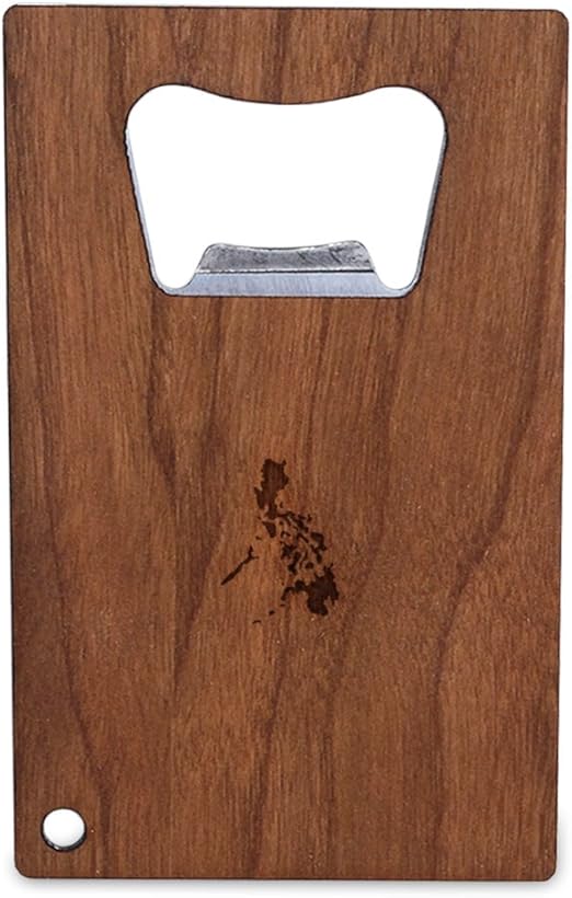 Amazon Com Wooden Accessories Company Credit Card Sized Bottle Opener With Laser Engraved Philippines Design Stainless Steel Bottle Opener With Wooden Front Panel Slim And Wallet Size Kitchen Dining