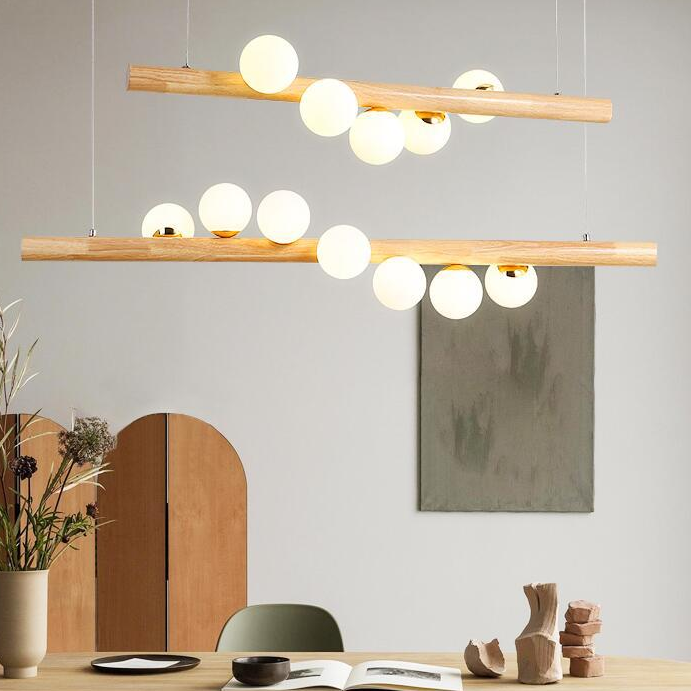 Modern Creative Bedroom Hanging Light Wooden Style Shades