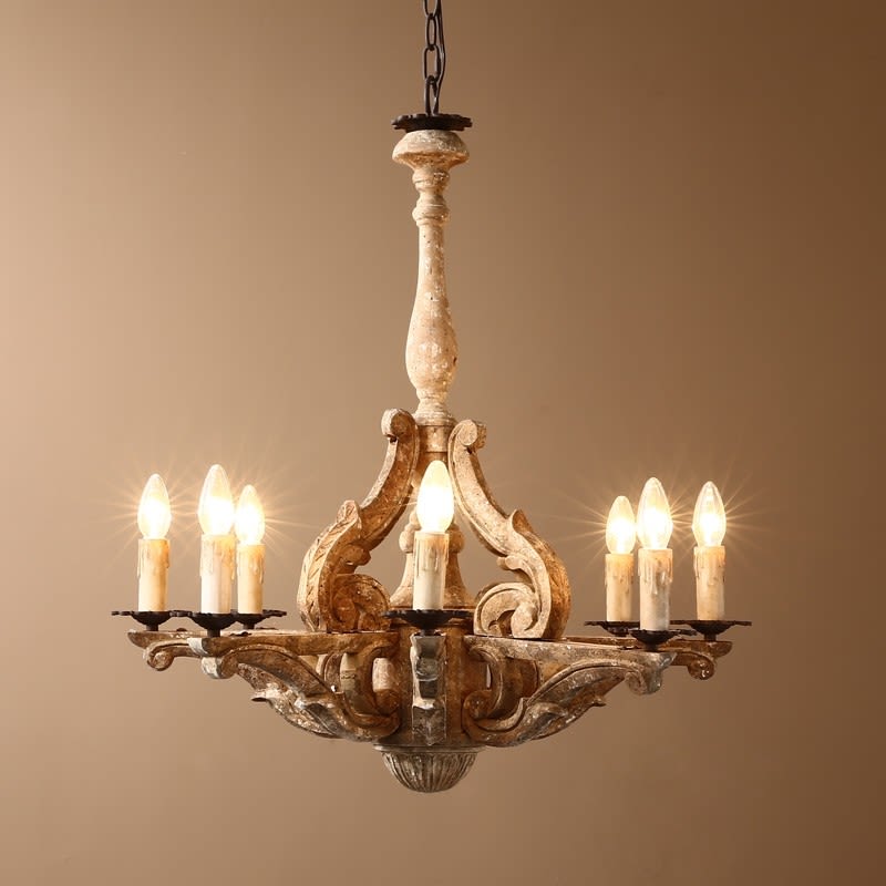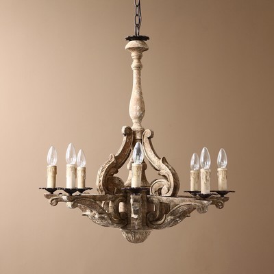 Shabby Chic Candle Style 6 Light Wood Chandelier On Sale Overstock 28132516