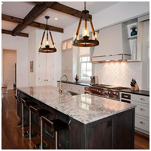 Giluta Wooden Ring Hemp Rope Chandelier Retro Farmhouse Style Pendant Lighting Vintage Round Ceiling Light Fixtures 3 Beachfront Decor